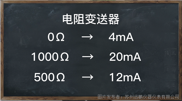 这是一只电阻变送器,他可以测量二线制电阻信号,阻值范围0-1000Ω,输出4~20mA信号,4~20mA输出与电阻阻值成线性关系,当测量阻值为0Ω时,输出为4mA,测量阻值为1000Ω时,输出为20mA,测量阻值为500Ω时,输出为12mA;